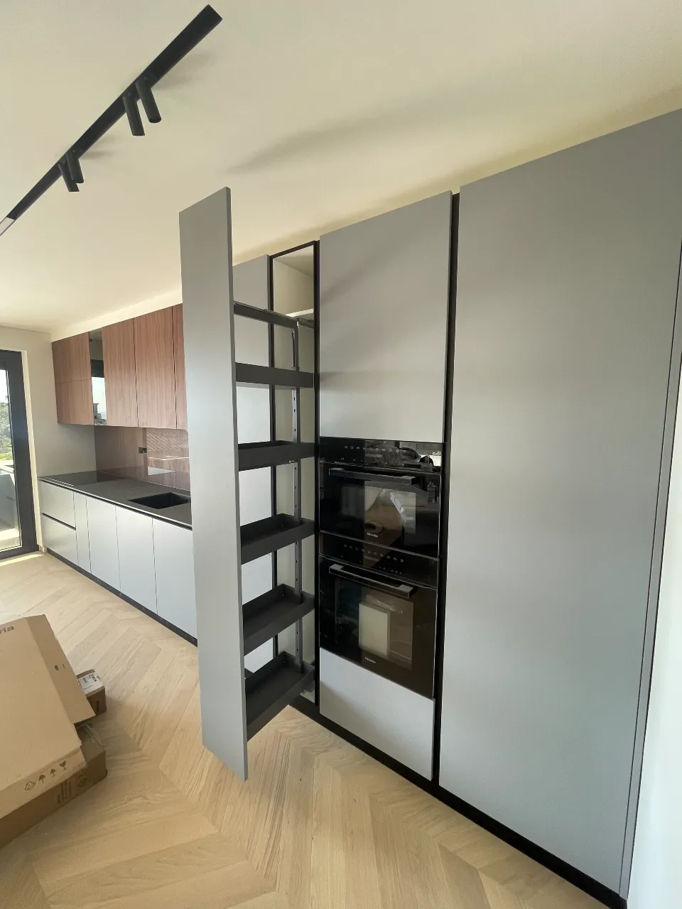 Oprema kao što su okovi, klizni sistemi, vodilice i ladice također igraju važnu ulogu u funkcionalnosti kuhinje.